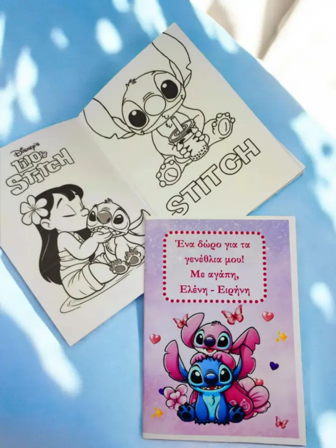Περιλαμβάνει σελίδες με σχέδια για χρωμάτισμα,πάντα με αγαπημένα παιδικά θέματα και φυσικά τυπωμένο εξώφυλλο με το όνομα του παιδιού!