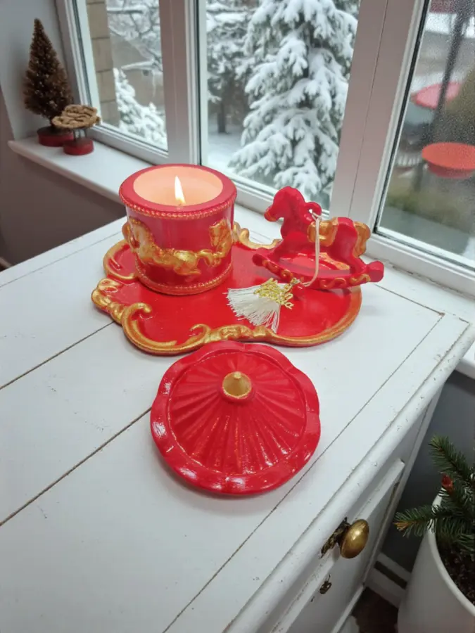 -Δοχείο με καπάκι Καρουζέλ,με περιεχόμενο αρωματικό φυτικό κερί σόγιας (8cm ύψος* 9cm μήκος)