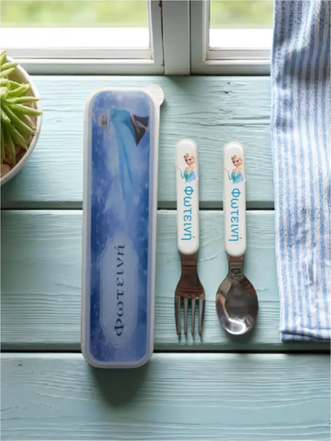 Προσωποποιημένα κουταλοπίρουνα με θήκη “Ελσα”(Frozen)
